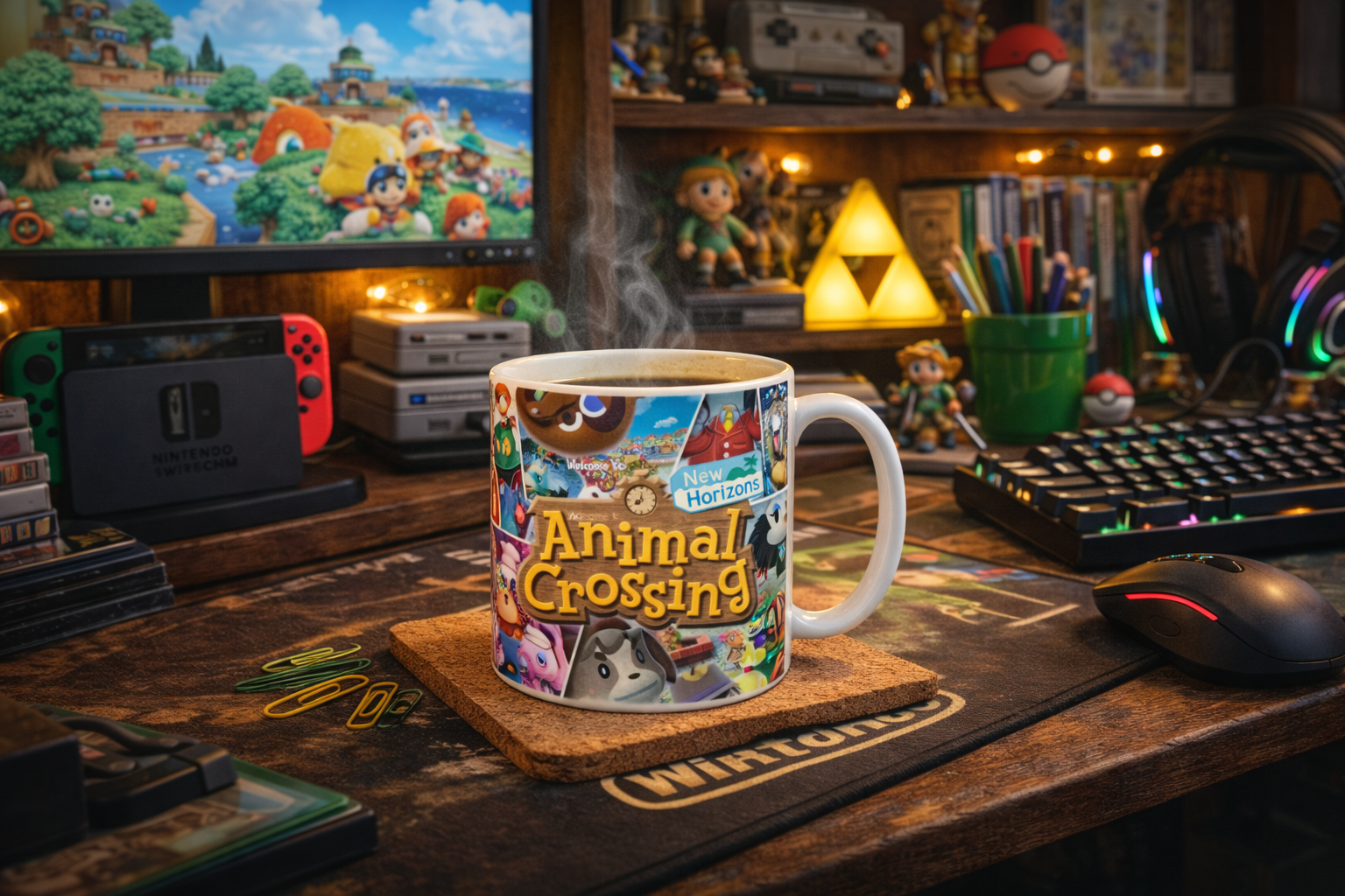 Plonge dans l’ambiance douce et ensoleillée de l’île avec cette tasse illustrée d’un panorama emblématique : plage, forêt, village et habitants réunis dans une scène chaleureuse et apaisante.