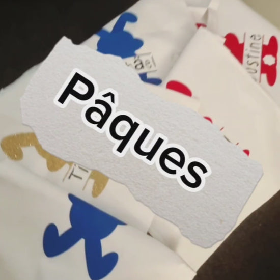 💖 Personnalisation exclusive : Ajoutez le prénom de votre enfant et choisissez parmi plusieurs designs adorables (lapins, poussins, œufs colorés, motifs printaniers…).