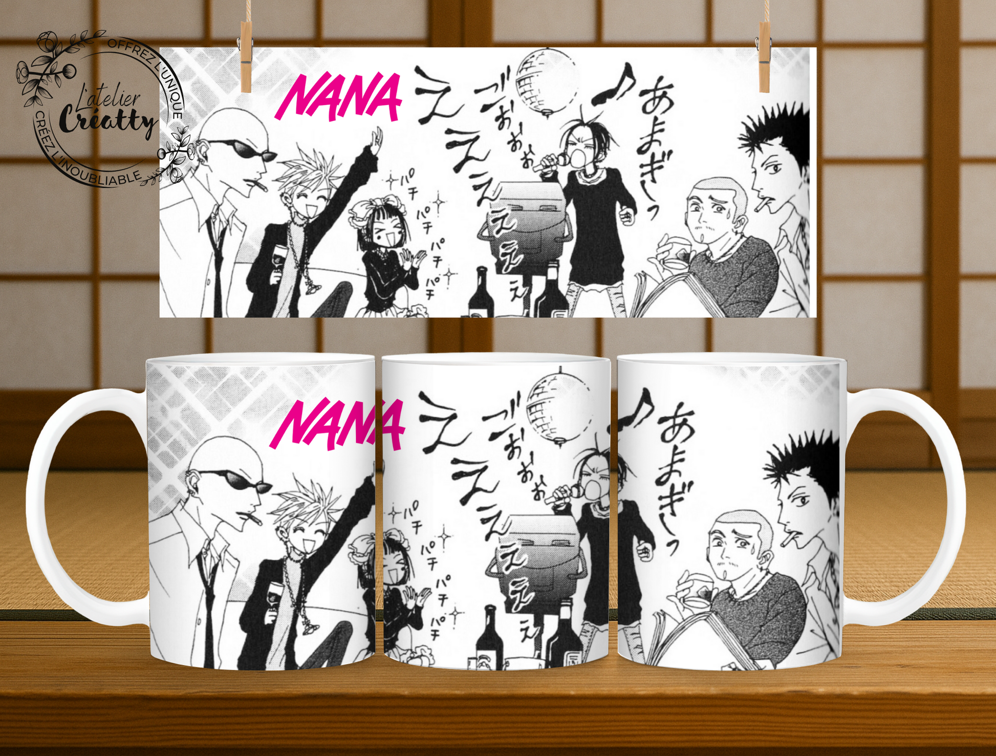 Plongez dans l’univers festif de Nana grâce à cette tasse illustrée d’une scène culte de karaoké. Entre rires, chants et verres levés, elle capture à merveille l’énergie déjantée du groupe. Un indispensable pour les fans qui veulent commencer leur journée avec le sourire.